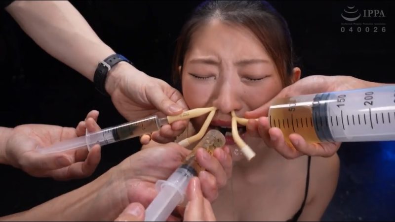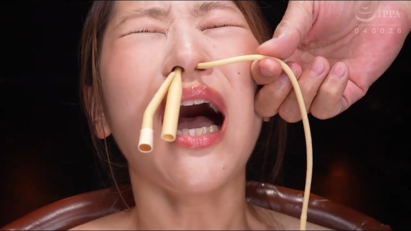 メインはイラマの何倍も酷いカテーテル挿入、鼻から胃まで挿入して男優のおしっこを大量に注入するというものです。